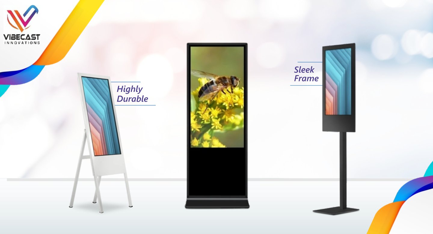 At VibeCast Innovations, we specialize in customizable digital signages for various applications. Our focus is on quality, versatility, and ensuring customer satisfaction with advanced features and smart integration.